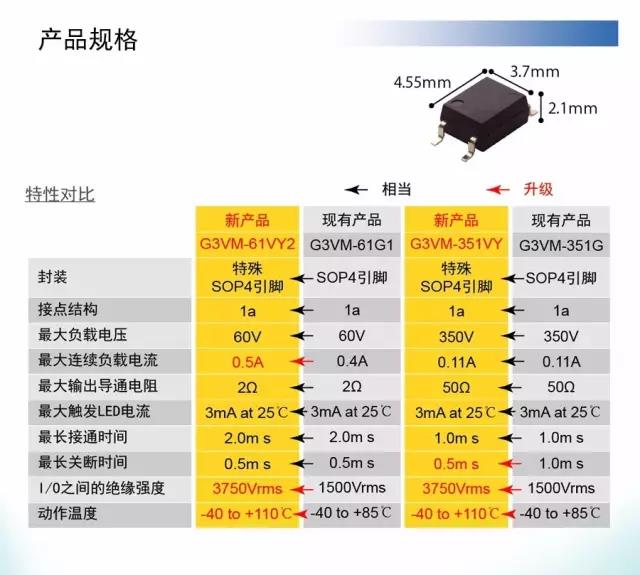 暢銷型號(hào)G3VM-61G1和G3VM-351G的升級(jí)版本。