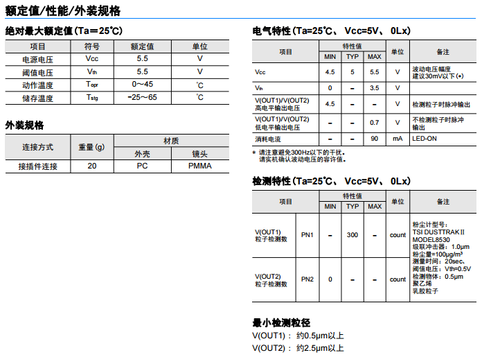 1、高靈敏度&小型灰塵傳感器