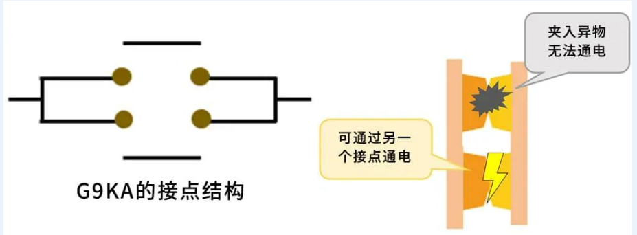 歐姆龍G9KA繼電器低接觸電阻0.2mΩ實現(xiàn)這個目標所面臨的重大課題之一便是接點上的異物,接點上一旦存在異物則會妨礙電流的通道,從而導致低電阻升高。