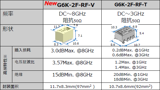 全新歐姆龍高頻信號繼電器G6K與G6KU,適合ATE(半導體自動測試儀器)市場的更高頻率要求。其中G6K-2F-RF-V其DPDT(雙刀雙擲開關)適用于差分傳輸信號;相比其他信號繼電器,切換信號性能更優質,用于高速信號切換,可達9.6Gbps。功耗更低,可達100mW;體積更小。鼎悅電子推出的G6K與G6KU高頻繼電器;外L型端子設計實現良好牢固度,更易于繼電器安全檢測、PCB維修及更換。