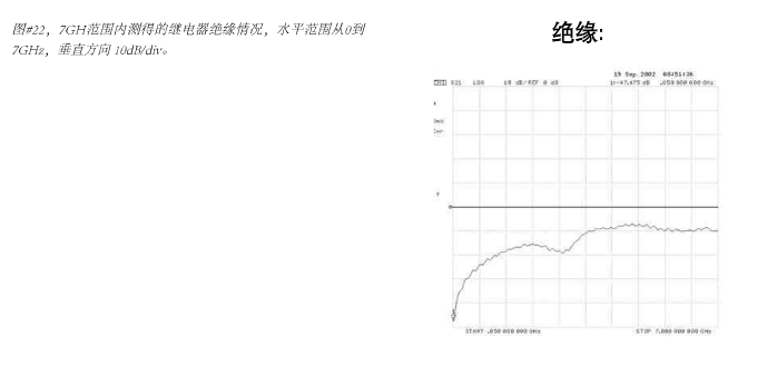 干簧開關(guān)的簧片已被一條純銅線所代替比較圖#19和#20兩圖的區(qū)別非常小或幾乎一致。當(dāng)然在傳輸大功率信號時還是有些細(xì)微差別的。但我們的許多應(yīng)用的情況下信號功率都是非常低的因此我們在7GHz之前所存在的差異是可以忽略不計(jì)的。