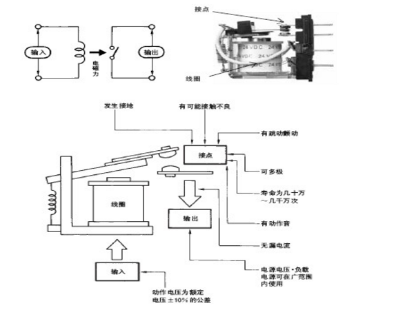 向線圈施加輸入電壓, 使其發(fā)生電磁力, 移動可動鐵片, 從而切換接點(diǎn)。不僅可在控制