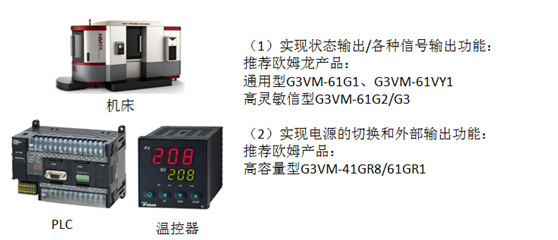 (3)自動化設(shè)備產(chǎn)品應(yīng)用:比較機床、PLC、溫控器、計時器等,繼電器在產(chǎn)品上起的作用主要為產(chǎn)品狀態(tài)指示、控制照明電源切換等。