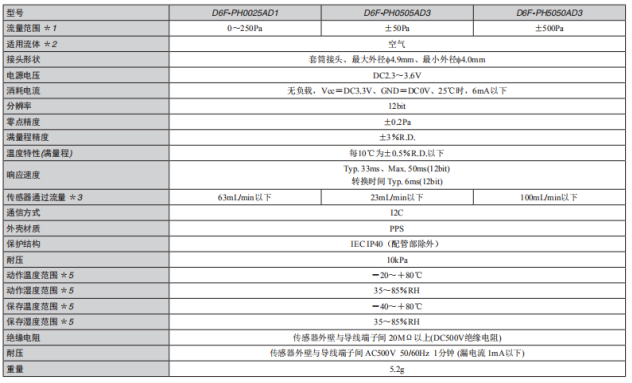 歐姆龍壓差傳感器D6F系列技術(shù)參數(shù)
