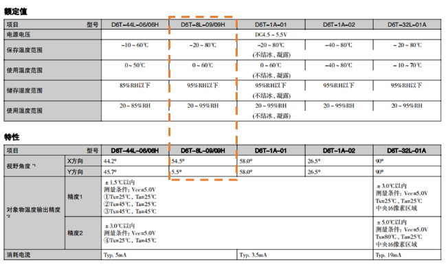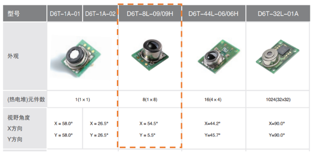 歐姆龍非接觸溫度傳感器D6T-8L-09以其紅外測檢測,I2C數(shù)字輸出,抗干擾性強(qiáng)三大優(yōu)勢為您的產(chǎn)品增加人體感應(yīng)功能,讓您的產(chǎn)品穩(wěn)定可靠,獨(dú)具特色。此傳感器像素為1x8,檢測區(qū)域呈長條形,橫向視場角54.5°,縱向視場角 5.5°,可根據(jù)產(chǎn)品的實(shí)際應(yīng)用進(jìn)行安裝角度調(diào)整。