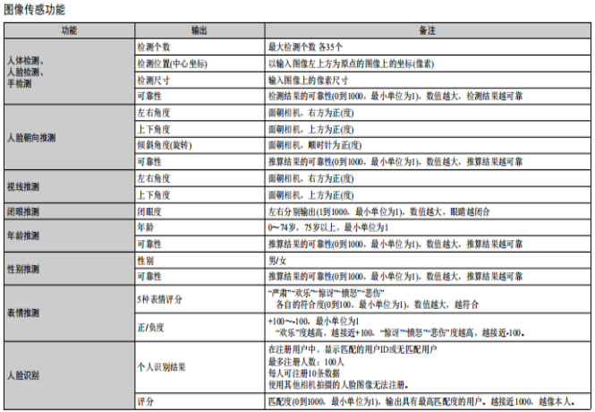 這款人體識(shí)別圖像傳感器視覺組件(HVC)是歐姆龍“OKAOTM Vision”圖像傳感技術(shù)的組合產(chǎn)品,可通過攝像頭模塊識(shí)別人體眨眼、視線方向、表情、性別或年齡。 其較大速率下的響應(yīng)時(shí)間是第一代HVC-P的10倍。 此外,還有兩種鏡頭可供選擇,長(zhǎng)距離50度型(B5T-007001-010)和廣角90度型(B5T-007001-020)。客戶可根據(jù)檢測(cè)距離和FOV(視場(chǎng))做出選擇。“HVC-P2”能夠檢測(cè)和推定對(duì)象的屬性和狀態(tài),而不會(huì)使其察覺攝像頭的存在,同時(shí)還能根據(jù)用戶需求提供對(duì)應(yīng)服務(wù)。