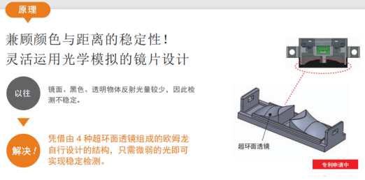 首先給大家科普一下限定反射傳感器的原理:傳感器接收來自檢測物體的反射光以檢測物體有無。擁有限定了投光光束和受光區(qū)域的光學(xué)系統(tǒng),僅可檢測相距傳感器一定距離(投光光束與受光區(qū)域重合的范圍)的物體。