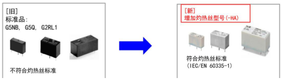 而我們的歐姆龍繼電器G5NB/G5Q/G2RL系列為此推出灼熱絲帶-HA型號(hào),兩者的區(qū)別就在于外殼和基座的塑料材質(zhì)是否為阻燃材料。
