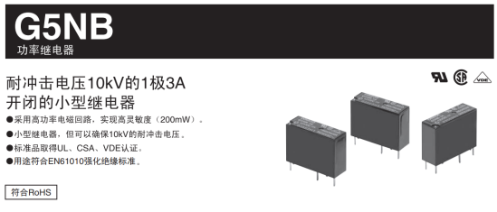 歐姆龍G5NB是一款耐沖擊電壓為10kV13A/5A開閉的小型繼電器,該器件采用了高功率電磁回路,能夠實現高達200mW的靈敏度。并且歐姆龍G5NB繼電器已經取得了ULCSAVDE認證,產品用途符合EN61010強化絕緣標準。