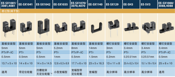歐姆龍型號(hào)EE-SX1088,3088對(duì)射式光電開(kāi)關(guān)可應(yīng)用于:復(fù)印機(jī)、傳真機(jī)、開(kāi)關(guān)掃描儀、打印機(jī)、門(mén)禁機(jī)、出卡機(jī)、車(chē)輛檢測(cè)器、跑步機(jī)、機(jī)器控制開(kāi)關(guān)、投幣機(jī)、自動(dòng)感應(yīng)器等上面。