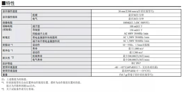 歐姆龍D2AW微動開關(guān)的機械壽命和電氣壽命均為至少200,000次(30次/min),符合IEC IP67防護等級,在60%RH以下、無結(jié)冰或結(jié)露的情況下,能夠在-40℃~+85℃的溫度范圍內(nèi)工作,而在最高95%RH的環(huán)境中,能夠在+5~+35℃的溫度范圍內(nèi)工作。不僅如此,該開關(guān)還具有很強的耐電壓性和耐沖擊性,可適用于工作條件較為嚴苛的環(huán)境中。