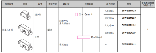 歐姆龍限定反射型傳感器B5W應(yīng)用在縫紉機(jī)中,這個(gè)系列的傳感器具有哪些特點(diǎn)呢,如下: