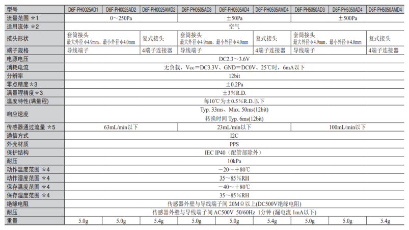 歐姆龍利用核心技術(shù)之一的MEMS技術(shù)在壓力傳感器方面實(shí)現(xiàn)了高精確度、低功耗、超小型三大優(yōu)勢(shì)特點(diǎn)。目前主要有表壓型傳感器、絕壓型傳感器和壓差型傳感器。今天給大家主要說(shuō)一下壓差型傳感器D6F-PH,是一款小型、高精度、耐環(huán)境性能較好的差壓傳感器。
