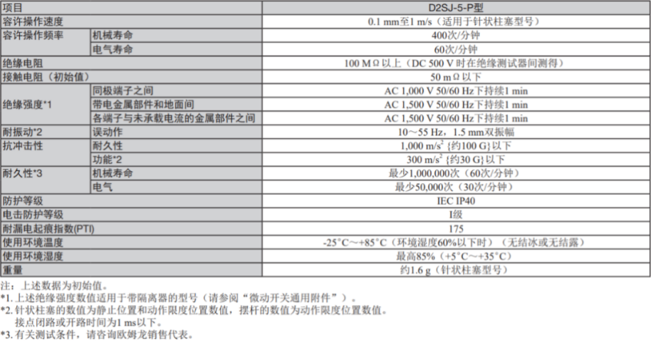 歐姆龍D2SJ擁有19.8mm×6.4mm×10.2mm的超小型封裝,和封密型輕觸開(kāi)關(guān)一樣,歐姆龍D2SJ采用了防塵、防水措施,能夠在-25℃~+85℃(濕度環(huán)境60%以下)等環(huán)境惡劣中也保持較高的性能。除此之外,在環(huán)境溫度20±2℃ 、環(huán)境濕度65±5%RH、操作頻率30次/min的情況下,歐姆龍D2SJ最大可達(dá)250V的額定電壓,5A的阻性負(fù)載,適用于更廣泛的產(chǎn)品。