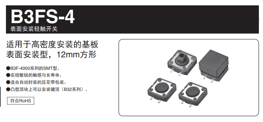 我司備有各種輕觸開(kāi)關(guān)都可以用于各類農(nóng)機(jī)控制器中;其中平地儀還會(huì)用到輕觸開(kāi)關(guān)B3FS-4系列;歡迎電話咨詢廣州鼎悅電子科技有限公司;相信我們可以帶給您不一樣的選擇;如圖: