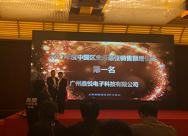 2018年3月15日歐姆龍電子部品(中國)統轄集團代理商年會上頒發的代理商獲獎事項,而我們廣州鼎悅電子科技有限公司榮獲”2017年度中國區業務最佳銷售額增長獎“。