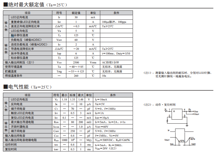 實現了堪比機械式繼電器的導通電阻80mΩ!DIP60V產品、實現大電流2A開閉的MOS FET繼電器 連續負載電流2A。 可用于微小模擬信號的開關。