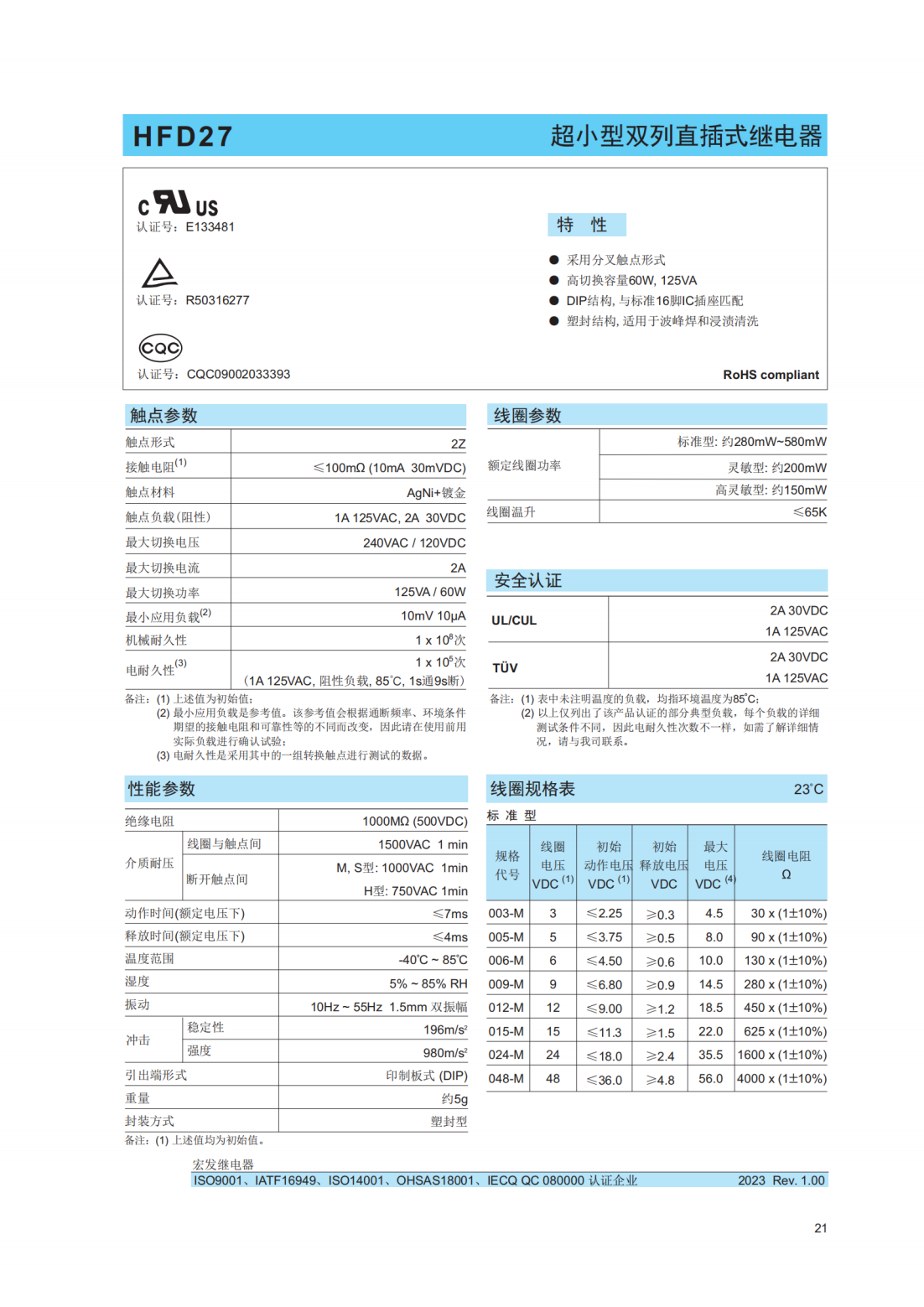 HFD27-005-M宏發繼電器