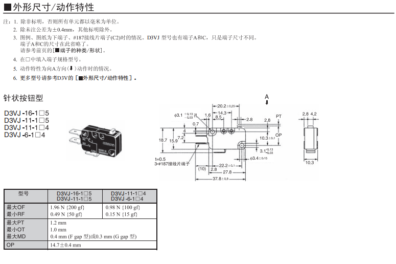 帶有外部杠桿的可靠的基本開關 外形尺寸與D3V相同。 適應未來市場要求。 備有16A、11A和6A型的產(chǎn)品。