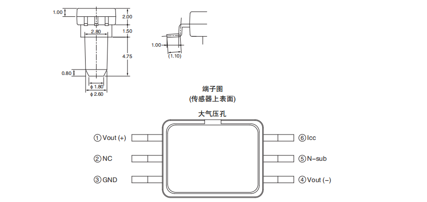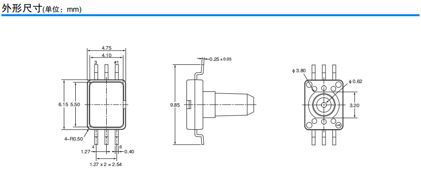 超小型、低功耗的MEMS表壓傳感器 長(zhǎng)6.1mm×寬4.7mm×高8.2mm的超小型。 比電容式壓力傳感器更優(yōu)異的電氣特性。 測(cè)量壓力范圍為0~37kPa。 偏置電壓:-2.5±4mV 量程電壓:31.0±3.1mV 0.2mW的低功耗。 受溫度影響小。 量程電壓:±1.0 %F.S. 偏置電壓:±3.0%F.S.