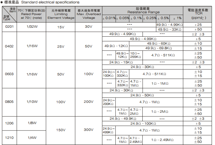 ●低溫度系數及高精度(±0.05%;±5ppm/℃)●適應再流焊與波峰焊●良好的耐濕性,高可靠性●符合ROHS指令要求